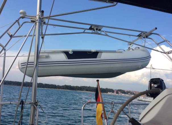 Installation im Nachhinein. Nachträgliche Installation von Davits auf schon vorhandenen Geräteträger / Heckbügel / Heckkorb.
